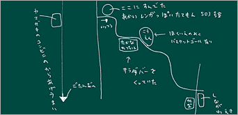 それ、じっと見てたら、なんだかキレイで、 台所から、さい箸を持ってきてさ・・・ |
