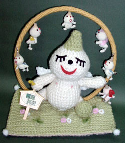 No.029 タイトル:極楽天使 作者名:よこん 天使くんに観音様テイストを加えて 極楽浄土っぽく演出してみました。 周りに飛んでいるチビ天使(クリ天)は 取り外し可能。 携帯ストラップにするつもりです。 作ってる最中は毎日毎日 家族に笑い(失笑?)をもたらした 極楽天使。 きっと幸せを運んできてくれると思います。