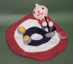 No.306 タイトル:天使くん、カナダでカーリングに挑戦戦 作者名:ほり ポイントは頭のとんがりの美しさです。 モスクの屋根のようなとがり具合を目指したのですが、 実際なかなかの仕上がりになったと思います。 あと、鼻も編んでとじ付けたところです。