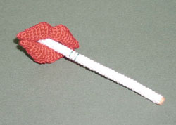 No.256 タイトル:くちびる 作者名:カナモトヒトミ 「エロチック」というと 「女性のからだの一部分」なイメージ。 とりあえず「くちびる」を作ってみたものの 全然「エロチック」ではありません。 これをなんとかできないかと考え 「くわえタバコ」になりました。