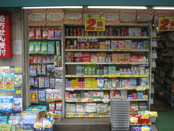 そうそう。薬屋って、とにかく上までびっしりでしょ。 |