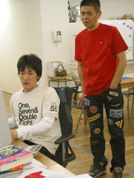 「ワッペン型の刺しゅう」を、縫い付けています。