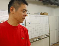 お呼びでなくても、darlingdarlingです。 毎日、書くことがなくなっても更新します、とか、 空元気なのか、口がすべったのか、 ハリーがC調に宣言していましたが・・・。 やわらかき 褥(しとね)は千葉に 身は此処に なーにを言ってるのやら・・・。 こんな俳句を机上に残して行方不明になっているので、 このページ、ぼくが書くことになりました。 前回は、別の目的で撮っていた写真をここで使って、 仮の「現物見本」として登場しましたが、 今回は、そのモニターをやっていたときの報告を させていただくことになりました。 ぼくは、新しく何かつくるときには、 数少ない見本をモニターすることが多いのですが、 この仕事、実はけっこう好きなんですよ。 (おかげでハラマキ見本長者だったりしています) このときのTシャツの場合だと、 着ているときのカタチが気に入るかどうかと、 手や肌の感触について感想を述べるのが目的でした。 ![]() カタチといっても、細かいディテールについては、 着続けてチェックするというよりも、 しっかりといろんな見本を並べては着てみるという、 比較で検討したほうがいいのですが。 生活のなかで着てみるということは、 「漠然とした誇り」を持って着続けられるかどうかが、 いちばん肝心なチェックポイントなのです。 服って、大きな意味で 「プライド」に関わるものでして、 これを着ている自分に自信が持てないというのは、 どんなにいいと言われるものでも、ダメなわけですよね。 だからこそ、値段が高かくて歴史のある「ブランド」が 大きな価値を持つわけです。 だから、こういうモニターをするときには、 「もう、早いとこ着替えたい」と思うような試作品は、 理由なんか考えることなく失格になります。 しかし、正直にいうと、 「着たいと思わせるような期待」がないと、 モニターになろうという気にもならないんですけどね。 ![]() で、前回の写真に映っているレッドと、ホワイトの場合、 ほとんどオッケーだったんです。 Tシャツのボディの部分がほぼ完成してからのモニターで、 ある意味、安心して「着てみるわ」と言えたのですが、 ずっといい感じで過ごせました。 実は、この写真の日よりも、その後、 洗濯してからのほうが「いいなじみ方」をしていて、 ずっと機嫌よく着られたんですけれどね。 でも、オッケーな感じで過ごせました。 あとは、生地素材を「しなやかでコシのある」ほうに 変えるということで、この回のモニターは終了しました。 このへんの、「プライドが持てる」という感覚は、 不肖ワタクシ、けっこういいモニターだと思うのです。 安い高いだの、有名無名だのを超えた何かが、 この感じを支えるのでして、とくに一年二年を過ぎてから、 いい気持ちで着られるということが、大大大事なのですね。 そのへんのところは、 「ほぼ日」初代のTシャツでさえ、いまでも みんなの間で、誇りを持って着られているということが、 それを証明していると言えましょう。 ガデンインスイでありましょうか? ![]() 次に、新しい「HOBO」のロゴのワンポイントの評判です。 ふっふっふ、これはうれしかった。 何もこちらから言わないのに、 「それ、どこの?いいなぁ」 と言われることが、2回。 短いモニター期間(ワンポイント付きは、一日だけ)で、 これは最高にナイスな反響ですよ。 「どこのだと思う?」と返すと、 某有名なおしゃれ系ブランドの名前が 返ってきたりもしました。 このワンポイントの開発中に、あるブランドが、 別のかたちでワンポイントを出していたので、 それと共通するなにかを感じさせたのかもしれません。 それから、「デンマーク?」という声も。 なるほど、レゴとかディック・ブルーナとかを 思い出しているのかもしれませんね。 どちらにしても、今回は、アメリカ調でないイメージを 見る人にあたえているのかもしれません。 あと、とくに何も反応しなかった人に、 「こんどのTシャツなんだけど、どう?」と尋ねると、 「大人っぽくもあり、若さもありみたいな感じで、 定番になるかもしれないね」と、 ちょっと業界っぽいご意見などもいただきました。 逆に、「気に入らないってことはない?」とさらに訊くと、 「ふつうに買うんじゃない? 5800円以上だったら、 やめるかなぁ・・・」 という感じ。 なんだか知らないけれど、不思議なことに、 複数の人が「5800円」という数字をあげていました。 こんなところでしょうか。 よく働くモニター、darlingdarlingからの報告でした。 もし、俳人ハリーが戻ってきたら、 この後に、なにか別のテキストが続くかもしれません。 ぼくは、ここまでにしておきます。 えー、戻りました。ハリーです。 すみません、陽気に誘われて、ちとそぞろ歩きを・・・ なんてことはありません。 人生、一生勉強です。学校の門を叩いておりました。 いやそんなことはどうでもいいんです。 きのうまだお見せできなかった、 織りネームの完成品が届きました! ![]() ※「B.