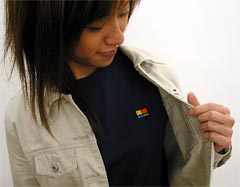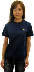 コメント: 大きさは、ジャストフィットっていうか、 肩とかピッタリで、ややタイトな感じ。 かなり痩せてるし、これでもOKだけど、 自分で買うのは、Sにするかもね。 同じくらいの身長でも、 もうちょっと普通の体型の人や、もっと背が高い人は、 Sサイズになると思う。 XSサイズは、わたしより背が低い人なら、 いい感じで着こなせるんじゃないかな。 でもやっぱり、自分のお気に入りのTシャツを ちゃんとものさしで計るのが、大事ですよね。 ※今回着用しているサンプルのXSサイズは、 製品とまったく同じサイズです。 ※ネイビーの色合いは、写真だと分かりにくいんですが、 黒に近い深いキリッとしまった紺色、 とてもいい色ですよ! ![]() コメント: (姿見を見ながら) やっぱり、この刺しゅうが効いてるよねー。 カジュアルなのに、大人っぽい。 大人っぽいのにかわいい。 XSとかSとか、小さいサイズのほうが、ボディに対する 刺しゅうのバランスが、おっきく見えるでしょ? おっきく見えるほうが、かわいさが増して、 女の子にとっては、うれしいんだよね。 ![]() コメント: 刺しゅうを生地に、じかに縫い付けてあるんだけど、 裏地がチクチクしないか、 ちょっとだけ心配してたんだけど、 ぜんぜんそんなことない。大丈夫! ![]() コメント: ジャケットからチラッと見えるのも、いい感じだね! あとさ、上を脱いだら、 カラフルなロゴがあらわれるっていうのも、 目を引く感じでいいかも。 一見すごくシンプルだけど、 着てると、自分がうれしいTシャツだよね。 B.S.T.2003「サイレントブラック」 サイズ:M モデル:ハリー 身長 :173cm 体重 :58kg 胸囲 :87cm