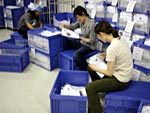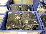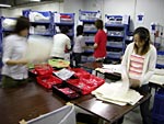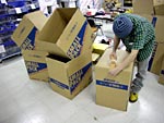 18:10 | 合理化につぐ合理化により さらなる高速化を実現!! なにやら三流コンピューターの 売り文句のようで恐縮ですが 作業がどんどん洗練されているのは まちがいのないところです。 これは個人の注文に合わせて 品物をかごにまとめ、 袋詰めに備えているところ。 |