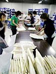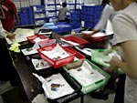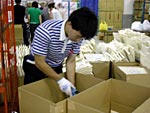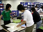 16:40 | このあたりは、仕分けした品物を 袋詰めする係の人たち。 高速ですし、楽しそうですし、 たまに歌など歌っています。 意外に懐かしい曲でした。 なんだったかは教えません。 ちなみに、その手元は このような感じで 素速く動き続けているのだ!! |