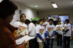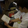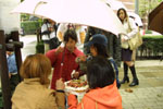 なにやら、店長とうーが密談中。 タイミングを計っている模様。 バスも到着! 通天閣がケーキをもってバスから降りてくる。 で、↓HAPPY BIRTHDAY TO Darling!! うわ〜い。記念撮影だ〜〜。 「お〜い、子供や、女子〜。甘党の男子〜。 食べたい人はケーキたべろ〜。」 こどもたち。 女子たち。 甘党の男子。