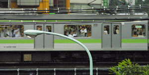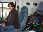 通天閣あかり、ほぼ日バスにのりこむ。 山手線に手を振る手振りポイントに急行中。 これから、その周辺をバスでぐるぐる周遊。 本日の運転手さん
