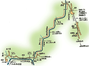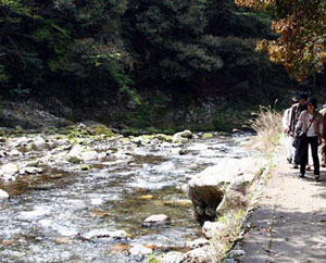 いや、お弁当重いし、 悪くなったらあかんからね。 雰囲気的にも、初っぱなの 河原のあたりで召し上がるのがいいですよ。 河原でお弁当をいただくのは、最高です。 ふつうのおにぎりだって、山下清さん風に 「おいしいんだなぁ」と思えます。 清滝方面に向かって、 川の流れにそって歩きます。 せせらぎのそばは、ほんとうに気持ちいい。 清滝に到着。 与謝野晶子さんの碑文が。 おたぎ念仏寺。ここには、 五百羅漢さんがおいでです。 いまや1200体もいらっしゃるそうな。 羅漢さんのお顔は、それぞれに違います。 おもしろいですよ。 このあたりは「京都バス」が運行しています。 「銀閣」へは、京都駅行きに乗り、 烏丸七条で降りればオッケー。 歩き疲れたら、平野屋さんで 甘いものとおいしいお茶をいただきましょう。 清涼寺。ここには釈迦如来立像など 国宝がたくさんあります。 お庭もたいへんよろしいです。