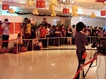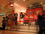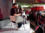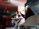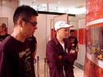 BOSEさんが到着! さっそく会場の展示を見つつ、 darlingと談笑です。 「うっわ〜、これはヤバいっすよね!」 「いや、オレもここへ来て ビックリした!」