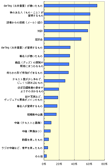 ![]() 次に、 ●「ほぼ日」の中で、どのようなタイプの コンテンツが好きですか? (こちらも複数回答です)