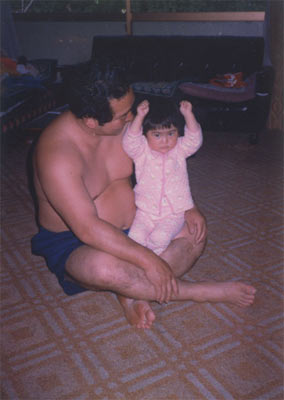 (2)父(すもう大スキ)と私です。