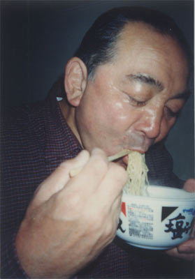 当日私の朝食のカップラーメンをうばってたべる姿です