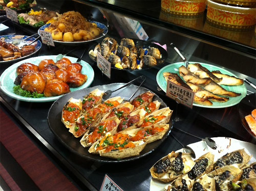 | こう、ひとの選んだお弁当を ずらっと並べるとおもしろいですよ。 |