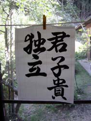 | 第75回 直島にて。 ほぼにちは。 密成です。 僕が、通っている 書道の先生が、 今、子供達に教えている字は 「いも」 です。 どうしても、一枚 欲しかったので、 一枚、失敗作を ゴミ箱から失敬してきました。 部屋に貼って、 時々、眺めてますが とてもいいですよ。 「まぁ、いいや。いも、いも。」 と、自分に言い聞かせたりします。 家訓にしようかな。 ちなみに、 僕が練習しているのは、 「君主子独立」 という字です。 こっちもいい言葉ですよね。 テキストには、 「君主は自主独立を尊いものとする。」 と、意味が書いてありますが、 練習していると、 「ONLY IS NOT LONELY」 みたいな気持ちにもなります。 ところで、僕は 「直島」(なおしま) という瀬戸内海の島に、 行ってきましたよ。 ここは、島の中に いろんな形態の “芸術”が点在してある、 とても不思議で素敵な島です。 美術館もありますが、 防波堤や砂浜にも、 デーンと 作品が置いてあったりします。 連載の最初のほうに書いた、 宮島達男さんの作品があるのも、 大きな動機の1つでした。 今回の旅行は 僕、個人にとっても、 坊さんや住職っていう仕事にとっても、 すごく感じることが、 たくさんありました。 「おぉぉぉ」 とか、 「うわー」 とか随分、言った気がする。 ただ単に、言葉を失ったり。 そして、僕が、 特に気に入ってしまったのは、 寺社や古い民家が集まる 集落(本村地区)に点在する 「家プロジェクト」 です。 古い家や 文化的に意味深い場所を、 改築、利用して “家”と内部の“芸術”が 丸ごと一個で、 1つの作品になっています。 すごく、強く感じたのは、 「やっぱり、 “古い”ものと、 “今”のものが、 うまく出会うと、 とんでもなく、いいなぁ。」 ってことです。 その“古いもの”が 歴史的に価値があったり 珍しいものでなくてもね。 それも、 ただ単に心が“なごむ”っていう レベルじゃなくて、 パーンって すごく大切な感情を提示する感じ。 “古いもの” に対しての、 “現在”のアプローチの仕方が、 慎重で、攻撃的。 そして、とっても、美しい。 僕は、その “溶け合った” 空間に囲まれて、 “生きる事への特別な感情” を、 とても、あいまいに、感じる。 強く。 これ、 まさに、僕が、 お寺で、みんなとやりたいこと。 ベネッセさん! 栄福寺に「出島」作りませんか? ははは。 今、思いついたけど 直島の作品と 強烈にリンクした存在を 「出島」っていう形で、 世界に点在さすと、 素敵じゃないですか? 栄福寺はともかく。 “隔離”の意味を受ける “出島”で繋がっていく。 うわっ。 ホント、 出島ってコンセプトよくない? 例えば、 栄福寺にも応用できる。 すごい小さな土地を (座布団、一枚ぐらい) 板橋と網走と佐渡島に借りて、 栄福寺となんらかの形で繋がる。 この“なんらか”ってのが、 難しいんだけどね。 あっ。 栄福寺、島じゃなかった・・・。 そんなわけで、 口をあんぐり、 あけつつ おいしいと 評判の 直島のうどん屋を訪ねる。 まだ、11時台なのに 既に、地元の人達が 席が空くのを待っている。 いわゆる、ひとつの “うまい、うどん屋” である。間違いない。 僕達は、空いたカウンターの すみっこに座って、 主人がうどんを、 ひたすら作っているのを眺める。 「かっこいいなぁ。」 「かっこいいねぇ。」 そして、考える。 たぶん、この人は、 このルーティンワークを、 退屈とか、刺激がないって 感じてないだろうな。 それは、 「俺が作る、うどんは、うまい。」 って腹の底から、考えてるからだろうな。 これもヒントだと思った。 次の日、 再び家プロジェクトの 本村地区に向かい、 もう一度、 宮島さんの作品をじっと眺める。 水に沈んだ発光する デジタルカウンター。 カウントを繰り返す、 無数の発光ダイオードを、 見ながら、 なんとなく『海馬』で出てきた、 「人間の感情は化学反応」 みたいな言葉が浮かんできて、 グッとくる。 いい作品だなぁ、って思った。 直島では、本当に いろんな事を考えたけど、 古い民家を利用した作品の 古い土壁や、 古い瓦と同じように、 “僕”という個人も お寺というメディアの 重要なパーツとして、 もっと敏感に 時間の積もった、伝統的なものを 継承したいなって思いました。 宗教音楽や、数多くの瞑想方法、 経典、著作・・・。 題材はいくらでもある。 栄福寺だけの、 “特別な感情”を 提示する為の、 自分の“役割”ってのに、 少し、気付いたかな。 楽しそうだね。 ミッセイ |