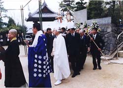 栄福寺本堂を出堂するじいちゃん