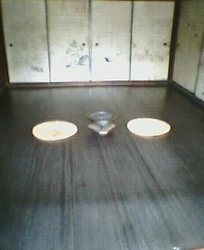 黒光りがしている古い板間の、