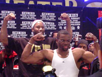 | ニューヨークから直送! ヘビー級統一タイトル戦、現地レポート第2弾 いよいよ「TWO BIG」2m級の大男の戦いが 近づいてきました。 現地ニューヨークでは、水曜日に共同会見、 木曜日に計量が行なわれました。 共同会見ではルイス選手が非常に落ち着き、 そしてリラックスしていたのが印象に残りました。 会見でルイスは、特にグラント選手のトレーナー、 ドン・ターナーをこき下ろしていました。 ターナーはホリフィールドのトレーナーとして 打倒ルイスを2度目指しましたが、 いずれも失敗に終わっています。 ボクシングはトレーナーの戦いでもあります。 選手の長所、短所を理解し、相手を分析。 当日の相手の戦略を読み、その上を行く戦術、 技術を教え勝利へ導く大切な参謀です。 試合では技術的なことはもちろん、 精神的にも選手を奮い立たせ限界以上の力を 引き出す役割もあります。 ルイス選手のトレーナーは 天才エマニエル・スチュアード。 オーソドックスですが、確実に相手を捕らえることを 基本から練習させるタイプです。 最近ではあのナジーム・ハメド選手にもついています。 ルイスには徹底して、長いリーチを使ったワン・ツー、 そして接近しての右アッパーを教え、 結果を出しています。 派手さはありませんが、 ルイスの体格を考えると非常に合理的作戦であり、 今回もスタイルを変えることはないでしょう。 つまり今回は、 グラント選手がターナーとどんな作戦でくるのか? が試合の一番の焦点となります。 ルイス選手よりも大きな身体を使い、 ロングから攻めるのか? 意表をついて接近戦を臨むのか? どちらにしてもルイスのワン・ツー、 アッパー対策は授けていなければ勝てません。 あとは選手が実際できるかどうか、にかかります。 会見の写真をみればわかりますが、 中央の2人はセミファイナルで試合をする、 IBF世界フェザー級チャンピオン、 ポール・イングル選手と 挑戦者のジュニア・ジョーンズ選手です。 ちなみにフェザー級は126Lbs(57.1kg)です。 写真からヘビー級の2人の大きさがわかるでしょう。 絶対にリングが小さく見える迫力の試合になるでしょう。 翌日は計量が行なわれました。 場所はMSG正面入り口です。 カメラ位置取りをして待つこと1時間30分。 ルイス選手は247Lbs(112kg) グラント選手は250Lbs(113.4kg)でした。 2人のウエイトは、 我々の想像以上に差がありませんでした。 これから推測すると、 やはりルイスのパワーがグラントを上回りそうです。 グラントはスピードと距離でルイスの射程をずらし、 隙があれば右ストレートで勝負。 というパターンでしょう。 逆にルイスは相手のスピード、距離に迷わされず、 出てくるところを打ち、 当たり始めたらプレッシャーをかけ、 弱ったらたたみかける。 という展開になるのではないでしょうか? どちらにしても勝者はヘビー級戦線の中心となり、 タイソン選手、ホリフィールド選手、 クリチコ兄弟などのターゲットになります。 果たして英国の誇りルイスか? グラントがアメリカにタイトルを 持ち帰らせることができるのか? WOWOWでは4月30日(日)AM11:00から 独占衛星生中継いたします。 おたのしみに。 WOWOWスポーツ部 小田真幹 ご意見はこちらまで [email protected] |