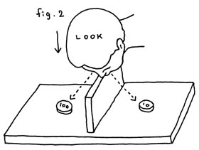 【プロローグ・その3】 みなさん、こんにちは! 前回の実験を、おぼえていらっしゃいますか? (※おぼえていないというかたや、 はじめて読むというかたは、こちらをどうぞ) 前回の実験によせられたたくさんのメールで みなさんがおこたえくださったとおり、あの画像は、 このように見えたのではないでしょうか? ほんとうにはないはずの線が、現れてしまう・・・ そして、そのように見えるのには、わけがあるのです。 盲点の実験で感じていただいたように、 わたしたちの視野の中には、見えていない部分があります。 しかし、わたしたちはふだん、 なぜそれに気づかないのでしょう? それは・・・ 「脳は、都合の悪いことをすごく嫌うから」なのです。 脳は、おかしなことが起きると、 「自分にわかるように」理解をしてしまいます。 自分がいま見ているものに対して、 何とか整合性を持たせようとするのです。 「上には線があり、下にも線がある。その中間は見えない」 そんな時に、脳がもっとも合理的に感じられるのは、 「その中間にもおなじように線がある」 ということになります。だから、上下をつなげてしまう。 ![]() 人間は、見たいようにしか、ものを見ない。 これが、脳を理解する際の、大前提になるのです。 脳は、目の前に展開している現実に対して、 整合性が保てなくなることを、とても嫌います。 わけがわからないままだと、理性を保てないからです。 こうした脳の性質は、ふだんの生活においても 勘違いのもとになるかもしれません。 現実を、常に自分の都合のいいほうにねじまげて、 自分が混乱しないようにものを見たがるわけですから。 では、今日も最後に、簡単な実験を紹介します。 ぜひ、やってみてくださいね。 このように、10円玉と100円玉を用意して、 あいだに、ノートのような仕切りをつくってください。 そして、下記のように、 右目が100円玉だけを、 左目が10円玉だけを見られるような 体勢を取ってみてください。 ・・・あなたの目には、何円玉がどのように見えますか? この実験の結果も、脳の性質とかなり関係があるのです。 こたえは、次回のこのページでお伝えします。 「こんなふうに見えたよ」というご意見を、 [email protected] こちらまで、「脳」という件名で お送りいただきますと、たいへんうれしいです。 ※次回は今週木曜日におとどけ。おたのしみに! |