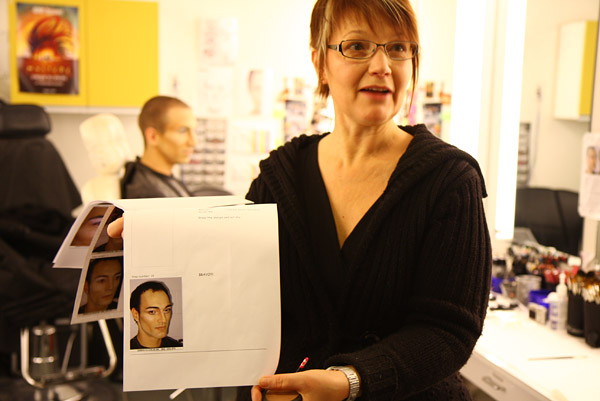 パフォーマーにメイクの指導をする人。