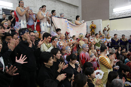 裏方を務めるスタッフがせいぞろいする舞台裏に、