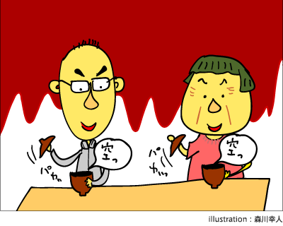 | 澄まし汁。 ジャスト汁のみ。 なーんにも具が入っていない。 いや、わかってるんですよ、 こっちは断食しにきてるんだから。 当たり前なんです、そんなことは。 ‥‥でもあれは、あのショックだけは、 本当に断食した人しかわからないです。 |