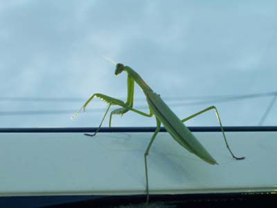 後輪のタイヤの下から昨日のカマキリが‥‥。