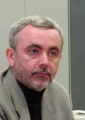4ヶ月ぶりのまったり更新、おひさしぶりです。 感心力リローデッドであります! 大げさ気味の出だしついでに、 まずは、感心力レボリューションズしておりましたと、 近況報告させていただきますね。 じつは、わたくし、禁煙運動にいそしんでおりました。 そのきっかけは、 忘れもしません5月のある日。 出先のとても禁煙なミーティングルームで 長い長い会議を終えたわたくしは、 路上禁煙区域なる千代田区を急ぎ足で駆け抜け、 ニコチンニコチンとつぶやきながら、 眼についた喫茶店に入ったわけです。 椅子取りゲーム並みの俊敏さで席に腰をおろし、 たばことライターをにんまり取り出したところ、 こんな店内表示がっ。 「健康増進法により当店は全席禁煙とさせて・・・」 なに〜〜、ここは喫茶店じゃないのかあ!!! 衝撃映像でしたね。 そんな頼みもしないのに周りで盛り上がる 「喫煙の不自由」に業を煮やし、 「ええい、このさい止めてしまえ!」と、 5月31日の世界禁煙デーから 律儀な禁煙者に成り果てたのであります。 この間、 体の調子がいいからちょっとむせてみたいとか、 阪神優勝記念に一本吸ってやろうかとか、 再煙をきつく思ったり願ったりもしましたが、 おかげさまで、 禁煙者としてすっかり安定期に入りました。 「あとは産むだけ」って、 妊娠したわけではないですからね。 いや、ものの弾みですよ。 ともかく「健康が増進中!」と 思い込むようにしています。 そんなこんなでしばらくの間、 禁煙にのたうちまわったり、 阪神の優勝に浮かれたりしていたのではあるのですが、 小刻みな感心もしておりました。 先月、仕事でヨーロッパのデザイン会社を まわっておったのですが、 その訪問先のうちのお一人が 今回のインタビューのお相手なのです。 イギリスはロンドンに拠点を置く、 トマトというクリエイティブ集団の マネージング・ディレクター、 日本で言うなら 営業統括責任者というところでしょうか、 そのスティーブ・ベイカーさん。 いま「トマトというクリエイティブ集団」と書きました。 「トマト」とは「tomato」と書く、 野菜を名前にした会社名でありまして、 http://www.tomato.co.uk/ そして、 「クリエイティブ集団」の意味するところですが、 とにかく何でも広範にクリエイティブする人たち、 といったところです。 グラフィックデザイン、音楽、映像、広告、 それからドキュメンタリーフィルムに、Web、写真、 インテリアデザイン、建築などなど、 よく言う「多岐にわたる」わけです。 そう、「ほぼ日」読者のみなさんも、 必ずやこのトマトの作品に 出会ってらっしゃるはすですよ。 一番人気のところですと、 トマトのメンバーの二人は、 あのテクノグループ、 アンダーワールド(underworld)のメンバーであります。 また、身近なところを挙げますと、 SONYのすべてのテレビ広告の最後に 1秒ぐらい流れる ごちゃごちゃっとした映像ありますよね。 あれです。 こんな説明でいいのか不安ではありますが、 みなさまに思い起こしていただけたことを祈念しつつ、 最近の例ですと、 テレビ朝日の新しいロゴマーク。 あの毎度毎度色や動きが忙しく変化するやつですけど、 一連のデザインはトマト社謹製であります。 で、そんなトマトのスティーブ・ベイカーさん、 ロンドンでビジネス話をしてしばらくも経たないうちに、 テレビ朝日の新ロゴ導入で来日する機会に、 折り入って、ひとつ話をしたいことがあると、 連絡が入ったのでした。 なんでも仕送りを増やして欲しいとか そういう話なはずもなく、 今あたためている構想、 「クリエイティブ・センター」の話をしたい、 とのこと。 よくわからないままに、 感心の予感がしたわたくしは、 AORに転身した西本乗組員に声をかけ、 この感心力インタビューと相成ったのでありました。 それでは、さっそくスティーヴ氏の話から。