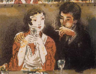 あ、シャンパンの品書きもある。 こまかいなあ。 織田一磨という人は、 こういうものをたくさん描いたんですね。