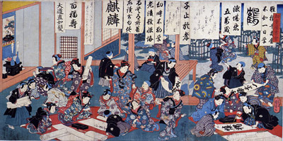 ▲「幼童席書会」 弘化年間 公文教育研究会蔵 (下は部分拡大図)