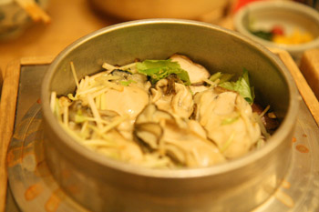 ぷりぷりの牡蛎がのせられた釜飯などをいただきました。 |