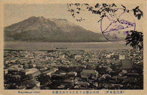 城山公園より見たる市街及び桜島(鹿児島県)大正〜昭和初期