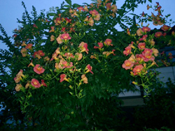| ミーちゃん、同世代の集いに参加する。 いつも、年下の人たちに囲まれていて、 「話がずれている」と劣等感のようなものを 感じているのだそうですが、 ここでは、みんな同じようなものだとわかったらしい。 しかし、思うのですが、 世の中には、「ずれている」ことを、 相手のせいにするエバリンボさんもいるのでして、 ほんとのとこ、そのほうが生きにくいと思うんですよ。 ___________________________ 7月6日(日)室温24℃ 湿度65% 夜中に2度も目が醒めたりしていた。 これでは疲れてしまうと思ったので 安定剤を呑んで又眠った。 目覚ましはかけないでおいたが丁度良い時間に目が醒めた。 今日は清子さんと妹さんが来るので楽しみだ。 空はグレー。窓のガラスには雨の雫が垂れている。 今日は一日雨なのか? どうせ今日のお客様はアルバム見るのとお話だけなので、 まあお天気は関係ない。おほほ。・・・ 末久さんから秋のスペイン旅行の事でデンワが有った。 私が「ろばのみみ舎」へ注文して調べてもらうので。 いよいよ本格的に始まって来た。 毎日眠いなんて、のんきな事ばかり言って居られない。 清子さん達は近いので歩いて来た。 妹さんは始めてお会いしたが 清子さんには失礼だが一つ違いとは思えない程若く見えた。 「お姉さんには内緒」 お茶も呑まない内に、もうアルバムを出して来て 二人はワーワーと「此処ステキ」とか、 「此れミーちゃん恰好いい」なんて言いながら 20年以上前の写真を見て喜んでいた。 二人とも朗らかな性格なので見ていても気持ちが良い。 途中でお隣のケーキを好きなだけ切って食べてもらい 熱い紅茶と、「巨峰」等でひと休みして 三人でキャーキャーして「アルバムで海外旅行」をした。 又来る事を約束して帰って行った。 今日も私は「加山雄三」だった。 紀子達はバドミントンに、出かけ 私はそろそろカーテンを閉めようかなと 南の庭の方を見たら何年も咲いたが「のうぜんかずら」に、 こんなに沢山一度に花が咲いたことは無い と思う程だったので慌ててデジカメで写してみた。 7月7日(月)室温24℃ 湿度74% 夜中の2時頃目が醒めたが 此のところ心身共に(パソコンの思うように出来ない事) 疲れているので又、安定剤を呑んで眠ったら いつもならマックちゃんと朝のお別れする頃に目が醒めた。 お天気も良く無くて小雨が、しとしと降っているだけで 只しーんとしている。 メールが2本来ていた。 嬉しいが、後でゆっくり感想は書く事にして 一先ず止めて朝の仕事にしょう。 午後メールを讀んだら「水戸市」の人で 此の春から仕事をしながら学校へ通い始めたが、 心の余裕が無かったがミーちゃんの日記を讀んで、 こんな風に丁寧に物事を感じて生きて行きたいと思い 先ずは楽しむ事感動する事から始めると。 良い感激を有難う。と。 もう一つは大津の30才の女性で 2年前に大学院に進学したくて6年近く勤めた会社を止めて バイトをしながら仕事上の事で落ち込んでいたが ミーちゃんの日記を讀んで「うふふ」や「おほほ」 と言うところを声を出して讀むと、ふっと心が、やわらぐ。 なんて書いて有り 私も嬉しくて元気を出す事にした。 今日はずーっと、しとしと雨が降り続き 庭の「のうぜんかずら」の花だけが オレンジ色で庭を明るくして居る。 どうも有難うと言いたくなる。 7月8日(火)室温23℃ 湿度75% 又、今日もしとしと雨が降って居る。 暗い静かな朝だ。 東の窓の障子を何も期待しないで開けて 物干竿の「小学生」の清純無垢な輝きに励まされて 「雨の朝も良いなー」と諦めに似たよろこびに 一人で、にやっとした。 又、雨かなんて思わないで・・・。 明日はお友達とお食事会に行くので 昨日は昔、自分で縫った服にアイロンかけたりして ハンガーに吊るして置いた。 今朝は雨が降っているのでお花を切るのが大変だが 仏様のお花が寂しくなるので サマーセーターを頭からかむって 「紫式部」の地味な花を取って来て紫陽花に足した。 その内、此れが紫色の小粒をまとめた様な実が沢山付くと 「日本の花」を感じて堪らなくなる。 それまであまり切らない様にしましょう。 今日は何時になっても薄暗くて肌寒い。 明日のタクシーを予約して安心したら眠くなってしまった。 何かにつけてこの頃は眠くなるのでおかしくなる。 寒いくらいなので何とか眠らないで我慢していられる。 うふふ。 今日はカレンダーには何も書き込んで無い気楽な日なので ゆっくりマックちゃんと遊んでみたい。 外は寒いしパソコンの練習に最適だが ミーちゃんはちょっとスムーズに行かないと 「又駄目か」と、落ち込んでしまうので進歩が無いのだ。 「わかっちゃ居るけど止められない」と、 「スーダラ節」になってしまう。 「お絵書き」で洋服のスタイルでも書いてみるかな? 午後になってこれから作ってみたいワンピースの スタイル画をペイントで書いてみた。 ペイントはマウスがうまく使えないので難しいが、 やや、思っていた様なものがかけた。う