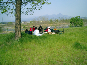 左に利根川や榛名山が綺麗に見える緑の芝生に到着だ。