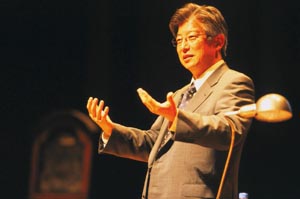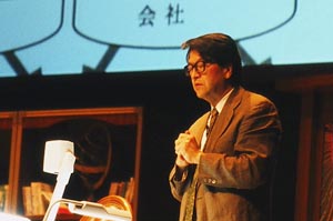 6時間以上に及んだ講演会の模様は、 1枚には納められませんから、当然、2枚組。 しかも、糸井重里が、 すべての講師の先生を後日訪問しての 追加対談をお願いして収録しました。 この記録映像が、本編に勝るとも劣らないおもしろさです。 ![]() 正直は最大の戦略である。…「社会の行方」 社会心理学の山岸俊男さんの講義から 6時間以上にわたる長時間イベントが始まった。 前回、行なわれた『300歳で300分』のDVDも 総収録時間311分という超長編。 「『ベンハー』を超える超大作」と 苦笑まじりに言われましたが、 今回はDVD2枚組の347分! 製作のバップさんは、うれしそうに 「これが限界です!」と悲鳴をあげました。 長いからいいソフトだというわけではありませんが、 今回のDVDに関しては、 「長くて、しかも、いい!」と自負しています。 (いや、主に先生方の講義内容のおかげなんですが) 5月16日の講演の最中、 各カメラからの映像をスイッチングしながら 講演の模様を編集しました。 のべ5万人の方が参加したインターネット中継で 配信されていたのがこの映像です。 ![]() 会社の新しい可能性を探る…「会社の行方」 理論経済学の岩井克人さんは OHPを板書がわりにしながら講義をすすめた。 こうした映像を、しっかりと積み重ねていけば、 DVDは出来上がるという段取りだったのですが、 ![]() 美の文明への道すじ。…「日本の行方」 比較経済史の川勝平太さんの講義の後、 「日本に生まれてよかった」という感想が殺到した。 凝り性のチームは、 「その日にその場にいた人と、 DVDでこの講義を味わう人とが、 どっちがよかったかを、 言い争うくらいの クオリティにしたい」 と、ほぼ完成間近の作品を前に、 喧々諤々の討議をはじめてしまったのでした。 ![]() 宇宙人として地球で暮す。…「地球の行方」 惑星物理学の松井孝典さんの億年単位という 壮大なスケールの話に会場中の脳みそが揺れ動いた。 結局、 「これ以上、納品が遅れると 発売日に間に合わない!」 という直前まで編集を続け、 いままでにない新鮮で、力強い作品に仕上がりました。 ねばってよかった! 全編、みどころなんです。 ですが、今すぐ買うのは ちょっと待った方がいいかもしれないんです。