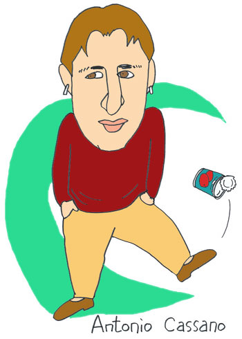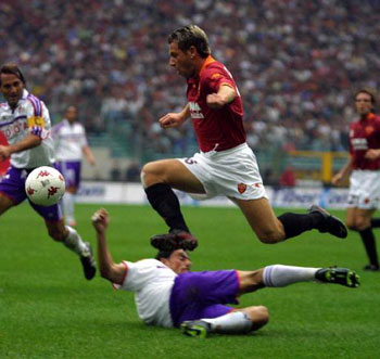 彼は天才だと言ってよいでしょうが、 少しばかり野生児っぽいのには理由があります。 彼はストリート・チルドレンすれすれの、 貧しい少年時代をすごしたのです。 父親や兄さんが、 しょっちゅう警察につかまっているような、 そんな環境に育ちました。 一家を支えていた唯一の働き手は、彼の母親でした。 彼女は息子たちに食事をあたえるために、 洗濯やアイロンかけの仕事を受けては、 昼も夜も働き続けました。 彼が育った街は、 南部の大都市バーリの近くにあります。 イタリア人にその出身地を言えば、 貧しい育ちだなとわかる、 本当にわびしい、衛生環境も良くない所です。 イタリア南部には、そんな地域が、 いまも大都市の近郊に多くみられるのです。 アントニオ・カッサーノは、 そこで、いつもサッカーをして遊んでいたそうです。 それも、ぼろ布で作ったボールで。 それでも、10才の時にはすでに、 道ゆく人々が足を止めるほどの 才能を発揮していました。 彼の洗練されたボールさばきは、すぐに知れ渡り、 「ちいさなマラドーナ」と呼ばれるようになるまで、 あまり時間はかかりませんでした。 人生の苦しみや喪失感の中で育ったアントニオですが、 17才でバーリの街のチームに入団します。 これがイタリア全国リーグ、セリエAへのデビューです。 貧しかった彼の初陣の相手は、皮肉なことに、 金銭的に恵まれているインテルでした。 でも、人気チームのインテルを相手に大活躍を見せた アントニオの幸運は、ここから始まったのです。 彼はこの試合で、素晴らしいプレイを見せただけではなく、 プラティーニ、ヴァン・バステン、ロナウドといった 真の天才にしか出来ないような、 とんでもないゴールを蹴りこみました。 セリエAに属する各有名チームが これを見のがすはずはありません。 彼の周囲は、にわかに騒がしくなり、 ユーヴェもミランもアントニオ獲得のために 名乗りをあげました。 そして、アントニオ・カッサーノ獲得合戦に 競り勝ったのはローマでした。 ローマは、この弱冠18才のアントニオに、 3500万ドルという高額な契約金を出したのです。 ![]()