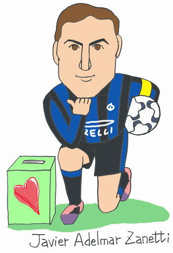 ローマのアイドルであるフランチェスコ・トッティは、 自分についてイタリアで流れている笑い話を自ら集め、 本にして出版し、売り上げをユニセフに寄付しました。 去年のことです。 それで終った訳ではありません。 その後、彼はFIATのスポットCFの契約金も、 障害を持つ子供たちの学校に贈りました。 このCFは、イタリアの全テレビ局で、 毎日のように流れています。 彼のこの行動は大変な評判をよび、 大成功を納めましたから、 彼の仲間たちも早速これに習いました。 ACミランでは、 ブラジルの孤児たちを援助すべく 「ミラン基金」を立ち上げました。 日本でもプレイしたことのあるブラジル人の レオナルドが、目下この基金の会長です。 マルディーニ、シェフチェンコ、ガットゥーゾ、 インザーギを始めとするミランの全員が、 レオナルドが会長をつとめるこの基金に、 毎月の給金の一部分を寄付しています。 インテルでも、 これに近い行動を起こしました。 ミランがブラジルの子供たちを助ける一方で、 インテルは多方面に少しづつ寄付を分配しているのですが、 アルゼンチンに向けて特に多くを贈っています。 インテルの今のキャプテンである ハビエル・ザネッティはアルゼンチン人ですからね。 みなさんも御存じでしょう、アルゼンチンは今、 大変な経済的困難のまっただ中にあります。 その結果、家もなければ食べ物にも事欠く子供たちが、 半端じゃない数でいるのです。 ザネッティは、このことをよくよく知っています。 ![]() インテルの選手たちは、 キャプテンの祖国の子供たちのために 立ち上がりました。 ヴィエリ、マテラッツィ、トルド、レコバなど もちろんみんなが協力していますよ。 中には里親になった選手も何人かいます。 子供たちはアルゼンチンに居続ける形で、です。 彼らは特に貧しい家庭に毎月の仕送りをします。 そして、アルゼンチンの貧しい家庭の子供たちは、 遠いイタリアでサッカーをしながら大金を稼ぎ、 自分たちを援助してくれる会ったこともない若者たちに、 手紙や写真を送って感謝しています。 ユベントスは、 この2チームとは異なる、第3の道を選びました。 彼らはイタリアの病気の子供たちを 援助することにしたのです。 昨年のことになりますが、 デル・ピエロ、ブッフォン、トゥラム、 トレセゲ、モンテーロが、 なんとカンツォーネのCDを吹き込みました。 その売り上げは、 ジェノヴァのガスリーニ病院に寄贈されました。 今年は何をするかというと、 彼らの写真で2004年版カレンダーを作りました。 その売り上げをトリノの聖アンナ病院に寄付する予定です。 この病院では貧しく病んだ子供たちの治療を続けています。 その数は年間5000人を上回るそうです。 試合に勝つこと、より優れたプレイをすること、 サッカー選手として登りつめることなど、 ともすれば他者を蹴り落とす立場におかれることで、 他者のために何かをするという意識を失いがちな イタリアのサッカー選手たちに、 変化が起こりつつあるということです。 良いことだと、僕は思います。 貧しく病んでいる人に善行を施すのは、 単にそうすれば天国が近付くというようなことに終らず、 善意を持って行動する本人の意識をも整えます。 人間的に整った意識は、 プレイにもきっと反映されるはずです。 気持ちの良いプレイがたくさん出てくると良いですね。