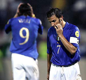 トッティは第1戦に出場しましたが、あろうことか デンマークの選手につばを吐きつけたことで、 失格処分になりました。 ![]() デル・ピエロは1ゴールさえ決められませんでした。 彼のプレイは色褪せ、情熱の感じられないものでした。 ヴィエリは、これはまた大仰でノロノロしていて、 カバだかサイだか、あの硬皮動物の一種みたいでした。 この3人のチャンピオンがイタリア代表チームを ヨーロッパの頂点に導くべきだった、主力選手たちですよ。 これでは、勝てるわけはありませんでした。 ![]() 総てにネガティブな遠征試合ではありましたが、 唯一の救いはアントニオ・カッサーノの台頭だったと 言えるでしょう。 22才の、この若いアタッカーは、 まさにトッティの失格によってメンバーに入れられ、 そのまま出場しつづけました。 出場しつづけたと言っても 2試合にも満たない時間でしたが、 彼はその中で2ゴールを決め、 ヨーロッパ中のサッカー界の注目を集めたのです。 ![]() さて、アズーリはこの敗退の苦悩と苦さと、 そこに追いかぶさるイタリアの ティフォーゾ全員の叱責の中で、 ポルトガルを去る時には、 まるでぎくしゃくしていました。 ![]() ![]() ![]() ポルトガルでのアズーリは、 イタリア人が最も愛さない姿のイタリア代表でした。 そして、 この負けには、なんの申し開きの余地もありません。 人々は、もはや確信しました。 イタリアのサッカー選手は今や金まみれで、 コマーシャル出演の契約や、 ファッションショー見物や、 テレビに出演することばかり考えている、 彼らにとってプレイは二の次なのだ、と。 いまや、なにもかもが流行の真似事なのです。 トッティは第1試合の時に妙な髪型で現れました。 ベッカムが去年していた格好に 似ていると言えなくもないような‥‥ カモラネージの頭はといえば、 これはなんと昔の侍(samurai)みたいでした。 ザ・ラスト・侍を気取ったつもりでしょうか。 アズーリに大金を注ぎ込んだスポンサーたちは、 イタリアの敗北に怒りまくっています。 あるスポーツ用品の会社はトッティに対して 怒りがおさまりません。 彼は第1試合の後で、 靴の具合が良くなかったので 良いプレイができなかったと 言ってのけたのです。 そしてアレッサンドロ・デル・ピエロに至っては、 彼の大きなスポンサーである 有名なミネラルウォーターの会社との 契約取り消しの危機におよんでいます。 アズーリはもう良いイメージが無いじゃない、 ということで。 ![]() 監督は、もちろん交代でしょう。 トラパットーニの契約は7月15日までですが、 それを待たずに交代させられる可能性が高いです。 イタリアのフェデレーションはすでに、 次の2年間のためのアズーリの監督には マルチェッロ・リッピを予定していると言っています。 彼は、ユベントスのティフォーゾには人気がありますが、 ACミランやインテルやローマのティフォーゾには 好まれてはいません。 ![]() トラパットーニがアズーリの監督になった時には、 イタリア人の誰もが彼を歓迎したものです。 マルチェッロ・リッピは今のところ、 イタリアの半分、つまり彼が長く監督していた ユーヴェのティフォーゾにしか歓迎されていません。 彼がイタリア代表の監督として 全イタリアの好感を得るためには、 さっそく「彼のアズーリ」が以前より優れていると 証明しなければなりません。 とりわけ「勝てる」ことを見せなければ、ね。 まずは2006年のW杯でしょう。 ここでもイタリアが勝てなければ、 リッピもトラパットーニと同じ終わりを迎えるのは 必至です。 ![]()
