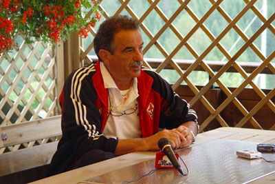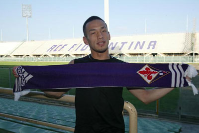 写真のフラッシュのきらめきと、 テレビカメラがたてる虫の羽音のような 静かなうなりに囲まれるようにして、 エミリアーノ・モンドニコ監督は現れました。 50人ほどの記者が彼を待ち受けていましたが、 その中には12人ほどの日本人記者もいました。 フィオレンティーナの エミリアーノ・モンドニコ監督にとって、 中田から最初に受けた印象は、 嬉しい驚きだったようです。 モンドニコは、中田英寿の最初の衝撃を、 こんなふうに説明してくれました。 「彼は偉大な人格者ですね。 とくに、彼が礼儀正しく紳士的であることは、 私にはすぐわかりました。 彼について私に伝えられていた印象とは、 まるっきり別のものでした」 中田は、フィオレンティーナの紫色のシャツを着る 最初の日本人です。 フィオレンティーナは歴史のあるチームですが、 2002年の組織の破産によって降格し、 この2年間というものセリエCとセリエBで プレイせざるを得ませんでした。 ようやくセリエAに戻れることが 決まったばかりです。 そんなわけで、 新生フィオレンティーナの再建に向けて、 中田はその礎石ともいうべき存在です。 彼を強力に望んだのは、モンドニコ監督本人と、 東京に大きな靴店を開こうとしている デッラ・ヴァッレ会長でした。 モンドニコは続けます。 「中田は、私の監督としての長い長いキャリアの中で 持った様々な選手たちの中でも、 まちがいなく最重要な選手です。 私はヴィエリなどの 偉大なチャンピオンたちも持ちましたが、 この日本人がその開放的な微笑みと、 私を戸惑わせるほどに紳士的な態度で私に与えた印象は、 他の誰からも受けたことのないものでした」 ![]()