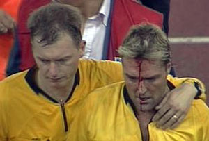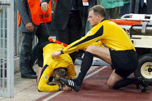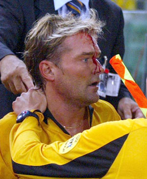 現場はローマのホーム、オリンピコ競技場でした。 前半戦が終り、ディナモが1対0で先制していました。 ちょうど両チームが休憩のために ピッチ上を更衣室に向かっていた時のことです、 ローマのメクセス選手がウクライナのひとりの選手に、 まず肩でぶつかり、次に蹴りを入れたのです。 フリスク審判はすぐさまレッド・カードを出し、 メクセスを退場させました。 これは全く正しい判断だったと ぼくは思います。 その様子は中継され、しっかり電波にものっていました。 それが、前例を見ない醜態が くり広げられる事件につながるとは‥‥ ローマがいらいらしていたのは事実です。 その数分前にトッティがイエロー・カードを受けており、 だいいちカッサーノが朝のフェラー監督とのケンカで 欠場していたことが、すでにローマを苛立たせていました。 だからといって、この後のみっともない展開は 許されるものではありません。 レッド・カードを受けたメクセスは フリスク審判に襲いかかろうとし、 オリンピコ競技場のティフォーゾたちは 審判に向かって物を投げはじめました。 その中の、たぶん1ユーロ硬貨か、金属のライターか、 投げているほうは大したものを投げたつもりは ないのでしょうが、 なにか固いものがフリスク審判に命中したのです。 ![]() それを命中させたのは、驚くことには競技場の特別席、 つまり招待者しか入れない席にいた人物です。 ということは、 彼はどこにでもいるティフォーゾではなく、 VIPなティフォーゾだったということです。 フリスク審判は手で額をさわり、 大量の血で濡れているのがわかると気持ちが悪くなり、 よろけ、めまいに襲われて地面に倒れこみました。 ![]() このシーンを目の当たりにした5万人の観衆は、 まるで頭がおかしくなったかのように怒鳴り始めました。 傷付いた審判に向かって ふつうの市民であるはずの観衆から 恥ずべきコーラスがわきおこりました。 「死んでしまえ、死んでしまえ!!」と。 フリスク審判は更衣室に移され、 救急車で病院に送られました。 ![]() UEFAにこの事が伝えられている間も、 オリンピコ競技場の観衆は 彼を侮辱しつづけました。 15分が過ぎ、30分が過ぎた頃、 「UEFAは安全性の確保ができないと判断し、 ゲームを中止します」という アナウンスが流されました。 こんな事態は聞いたこともありません。 これでローマは、 クラブチームとしてヨーロッパを制覇する夢を ぶちこわしました。 イタリアサッカーにとっては、 暗いニュースの新たな1ページを 書き加えたことになります。 誰もが道徳上の義務として 「恥を知る」べきです。 ですから、この事件は全員の責任だと ぼくは思います。 なんの栄光もなく負けた 去年のヨーロッパ内の選手権のかずかずを、 今年は忘れさせる為の「あがない」の年に なるはずだったのですが、 幕開けからが、 イタリアサッカーにとって、 これ以上ないほどに酷いことになってしまいました。 いまや「カルチョ」の堕落は進んでいるとしか思えません。 そして誰も、残念ながら、 この堕落がいつどこで止まるのかを知らないのです。