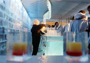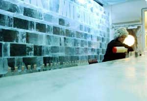 まず内装は氷。‥‥氷だけ! そう、氷でつくられた店なんです。 このとんでもないレストラン・バーの オープニング・パーティーには VIPたちがこぞって現れました。 自分を見せるびらかすチャンスには、 絶対に姿をあらわすような人びと、 そう、俳優、モデル、有名なジャーナリスト、 そしてサッカー選手たちが。 真っ先に来たのはココとヴィエリでしたよ。 (ううむ、やっぱり。) ここは壁も床も、 テーブルからカウンターから椅子までも、 すべてが氷でできたレストランです。 バールのコーナーもあります。 オープンしたのは先週で、 場所はミラノのジェルザレンメ広場。 イタリア国営放送局のRAIをはじめ、 大手のテレビ局がこのことを話題にしました。 ![]() ここのバーテンダーや店員たちの服装は、 コザック帽と毛皮、そして厚ぼったいセーターです。 彼らはたった一度しか使わないグラスで、 飲み物を運んできます。 そうです、グラスも透き通った氷でできているので 洗ってまた使うわけにはいきません。 天井からは鍾乳石の形のランプが下がり、 これはもちろん氷じゃなくてプラスチック製なのですが、 すぐに流行になって誰かがマネできたのは、 この店の中ではこのランプだけでしょう。 ランプはなぜ氷じゃないか? 氷がとけたら、すぐにショートしてしまいますからね。 ここはミラノ、北極ではありませんが、 中はおそろしく寒いです。 室温をきっちりマイナス5度に設定してあるのです。