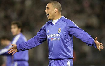 さて2005年3月9日水曜日、 舞台はふたたびUEFAチャンピオンズ・リーグです。 彼は雪辱をはたせるかに見えました。 レアルはユベントスとの1回戦を勝っており、 トリノでの2回戦も引き分けにできそうな感じでした。 ところがユーべのトレセゲがゴールを入れて、 試合の様子は一気に変わります。 ロナウドが本当の意味でレアル側の唯一の 危険人物だったのですが、 タッキナルディに対するリアクションでファールを犯し、 審判が出したのはレッド・カードでした。 ロナウド、タッキナルディ、ともに退場です。 この対戦は合計点でレアルをおさえたユーベが勝ち、 同時にレアルは UEFAチャンピオンズ・リーグから敗退しました。 ロナウドは、ふたたびトリノの競技場から、 負けて、うちひしがれて、怒りにみちて退場です。 彼は試合のあとで、またもや、 ユーべは審判たちから特別に守られているチームだと 言い張りました。 「イタリアでユーべを負かすのはほとんど不可能だ、 ユーべはひいきされ続けている」と。 そして唐突にも、彼はこう言い足しました。 「レアル・マドリードは ぼくにとって居心地がいいけれど、 もし移るとしたらインテルにもどりたいな」 ![]()