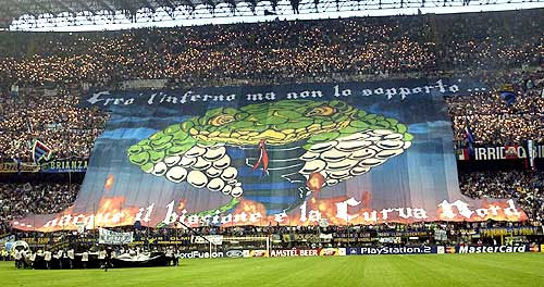 2年前にもUEFAチャンピオンズ・リーグで ACミランとインテルとの ダービー戦があったと書きました。 同じ街のチームですが、 論理上ではホームとアウェイの試合に区別されて、 点数の計算がなされます。 この対戦では、得点が倍の計算になる 「アウェイ」の試合でゴールを入れて引き分けた ACミランが、準決勝戦を勝ち抜けました。 ACミラン側からいうと、 ホーム0対0、アウェイ1対1の結果です。 この勝利の記憶がありますから、 ACミランのティフォーゾたちにとっては、 再びの、この組み合わせも満足かもしれません。 ![]() でも、本当は誰も「再対戦」は望んでいないとも言えます。 第一に、この組み合わせはテンションが高すぎます。 宿敵同士が真っ向から闘う上に、舞台が UEFAチャンピオンズ・リーグです。 2年前の対戦でも誰もが興奮しまくったのです。 乱暴な気持ちのままに、たくさんの人たちが 多くの言葉を吐いたり、また引っ込めたり、 いわば暴力的なまでの、 それはもうひどい大騒ぎでした。 またあの混乱をくりかえすのかと思っただけで、 もううんざりな人も多いのです。 2年前とは状況の変化もあります。 例えばインテルでプレイしていたクレスポは、 今はACミランにいるなど、 選手の入れ代わりもありますし、 インテルでは監督が交代しましたしね。 2年前にはアルゼンチン人のヘクトル・クーペルが、 インテルの監督でした。 彼は、どの試合も最後の決戦であるかのように 大事にとらえ、選手たちがピッチにのぼる時には 彼らの胸を手でたたいて勇気づけていました。 本当の戦争での布告のような断言もしました。 「これは人生の闘いだ」とか 「我々は総てを喰いつくさねばならない、 ピッチの草までも」 とかね。 まるで選手たちを電気仕掛けのコードで 捕らえているかのようにあやつろうとし、 試合前夜を緊張感を持って過ごすようにと 選手たちに命じ、したがって、 たぶん選手たちの夜の眠りすら 邪魔することになったであろうクーペル監督は、 今は、もういません。 インテルの選手たちにとっては、 絶対に勝たなければならない試合の事が 悪夢となっておそいかかり、 うなされて眠れない、なんてことになったのでは なかろうかと思えるほどでした。