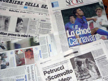| モスクワ・マリオットグランドホテル712号室、 1999年5月11日。 カンナヴァーロ映像の衝撃。 ![]() 2005年4月28日23時15分。 イタリアで最も重要なテレビ放送局Rai(ライ)が、 ある映像を流し始めました。 それを見た視聴者たちは、仰天しました。 そして視聴者たちから殺到した電話で、 Raiの電話交換台はパンクしたそうです。 この放映を好意的に評価した人びともいれば、 抗議する人もいましたし、議論しようとする人もいました。 とにかく誰もがショックを受けていました。 それは本当に衝撃的な映像でした。 写っていたのは、 ユベントスのディフェンダーであり イタリア代表チーム・アズーリの キャプテンでもある ファビオ・カンナヴァーロです。