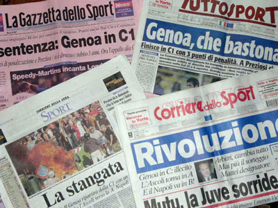 ジェノア続報、セリエC降格の真相。![]() イタリアサッカーの歴史が、また、書き直されました。 それも、悪いほうに。