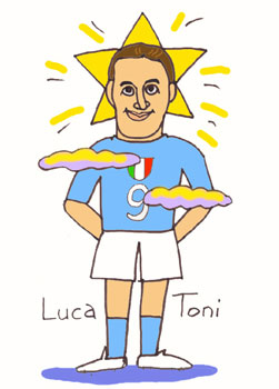 6年前、彼がヴィチェンツァでプレイしていた時に、 イギリスから彼の働きを観察に来た人たちがいました。 そして世界で最も名高いチームのひとつである マンチェスター・ユナイテッドが、 彼との契約話を提示してきました。 ヴィチェンツァは、 その提示にすぐに応じたのですが、 ルカ・トーニ本人はこれをことわりました。 これにはたいがいの人が驚いたのですが、 彼はきっぱりと、こう言ったのです、 「ぼくはイタリアから離れたくありません。 イギリスへ予備選手をしに行くことになるのだろうから、 ぼくはヴィチェンツァに残ることを希望します」 その直後にトーニのメルカートでの値段が跳ね上がり、 結局、彼が落ちついた先はブレシャでした。 ブレシャで彼はカンピオナートの2シーズンを、 あのロベルト・バッジョと一緒にプレイしました。 バッジョのような桁外れの選手と一緒にプレイすることで、 彼は技術面で大きく進歩し、だんだんと メルカートで取り沙汰される サッカー選手になっていきました。 実際に、この7月に彼がパレルモから フィオレンティーナに移籍した時の金額は 1200万ユーロ(約16億3000万円)でした。 対ベラルーシ戦で、 彼はもうひとりのメルカート級の選手である ジラルディーノと、ペアを組んでプレイしました。 このふたりが見せ場を作ったのです。 アズーリのマルチェッロ・リッピ監督は試合の後で、 次のW杯へむけてのトーニの位置は 決まったようなものだと言いました。 その一方で、時の流れによる厳しい判定を 受け入れようとしないデル・ピエロとヴィエリの、 ふたりのチャンピオンたちへの期待は 大幅に弱まったとも言いました。 彼らは30才を大きく超えており、 それぞれに所属するユベントスやACミランでも レギュラー選手ではありません。 それでも多くのティフォーゾたちは、 まだ彼らが代表チームのシャツを着ているところを 見たがっているようですけれど。