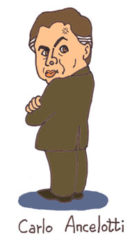論争はACミランでも起きました。 この「ホームでの引き分け」に激怒した ベルルスコーニ会長が、 またもやアンチェロッティ監督をやり玉にあげたのです。 今回のベルルスコーニの言い方は 「アンチェロッティは最低の仕立て屋だ。 せっかく最高の生地を持っているのに 良い服を作れない」でした。 自分では、きっと、おしゃれな言い方ができたと 思っていることでしょう。 イタリア政府首相でもあるベルルスコーニは、 彼が監督すれば確実に勝利するはずの 偉大なチャンピオンたちに大金を使ったと、 いつも強調します。 大金をはたいて最高の生地を与えているのに 良い服を作れないアンチェロッティが、 このイタリア首相はお気に召しません。 ただ、春に大事な選挙があることから、 だれかを失職させるという 良くないイメージを作らないために、 アンチェロッティを首にするのは我慢しているのです。 ![]() インテルも問題を抱えている点では同じで、 混乱の原因はアドリアーノです。 彼は9月15日にブラジルからイタリアに 戻ってこなければいけなかったのですが、 2日間にわたって飛行機をのがし、 予定よりもずっと遅れて帰って来ました。 アドリアーノ不在でも、 カンピオナートの対リヴォルノ戦には、 インテルが5対0で勝ちました。 ところがポルトガルでは「アドリアーノ論争」が 再浮上し、こちらも難破です。 アドリアーノは後半戦で出場したのですが、 なんだか意欲に欠けるプレイでした。 もうインテルは彼にとって全然重要ではないと、 まるで彼がそう思っているように見えたのがいけません。 監督不行き届きであるマンチーニが悪いという 意見が多い中で、監督解雇にまで論争が及んでいます。 近いうちに、もしかすると次の試合で 監督が解雇される可能性も、全く無いとは言えません。
