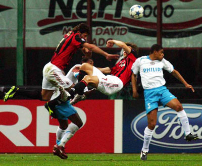 2位のACミランはホームであるサン・シーロ競技場で オランダのPSVと引き分け、