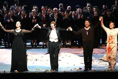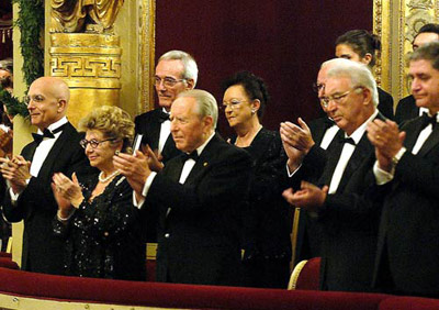 スカラ座の初日は、 信じられないほどの成功をおさめたそうです。 もちろんチケットは早くから完売で、 これによって230万ユーロほどが入る計算です。 この上にテレビ放映権の料金が加算されます。 公演はRAIによって録画され、 ヨーロッパ、アジア、アメリカなど、 世界中の国々で放映されますから、 その額も半端ではないでしょう。 さて観客の中でもっとも熱い歓迎をうけたのは、 イタリア大統領のアゼリョ・チャンピでした。 かれはフランカ夫人とともに来場し、 居あわせた観客たちから受けた喝采は、 ダニエル・ハーディングに向けられたたものと 同じくらい熱狂的でした。