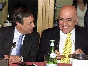 実際に先週の火曜日のこと、 あるテレビの、ミラノとマドリードの中継放送で、 まさにベルルスコーニの右腕である ACミランの代表取締役が、 こう、ロナウドに、メッセージを送りました。 「あなたは誰よりも偉大なサッカー選手です。 ACミランのドアは、あなたのためなら いつでも開いていることを知っておいてください」 ACミラン会長のベルルスコーニは 金額欄が白紙の小切手を用意したようです。 これがイタリアで意味することは、つまり、 この特別なブラジル人選手を獲得するためなら、 どんな額も支払うつもりだということです。 ACミランとインテルは、 同じミラノの街をホームとする宿敵同士です。 そして個人的にもベルルスコーニとライバル関係にある インテルのオーナー、マッシモ・モラッティは、 ロナウドではなくレアル・マドリード会長の フィオレンティーノ・ペレズ(下の写真左)に電話をかけ、 「きみにACミランが申し出る金額に、 さらに100万ユーロ乗せた額を、 ぼくは支払うよ」と伝えたそうです。 モラッティは友人でもあるペレズから、 サミュエル、ソラーリ、フィーゴを 昨年の夏に購入しています。 ![]() ロナウドと過去に因果関係のないACミランが、 とりあえず彼に贈るのは金銭です。 でもインテルが贈れるのは、 たぶんそれ以上のものでしょう。 多くのティフォーゾたちは、 インテルを去って行ったロナウドを 絶対に許したくありません。 許したくない気持ちは、けれども、 時間の流れの中で後悔や 許せないことへの後ろめたさとまじりあって、 大きな矛盾を生んでいます。 その矛盾を超えて、ふたたび彼を迎え入れるなら、 それはロナウドにたいする愛情以外の なにものでもありません。 インテルがお金に加えてロナウドに贈れるものは、 苦しみを乗りこえてつづく愛情です。 ティフォーゾたちの気持ちはどうであれ、 ACミランより多額を支払うつもりでいるのが モラッティです、どんなに高額でも用意するでしょう。 近年でもっとも大きな威信と世界的な名声を インテルにもたらしたのは、ロナウドです。 その彼が、あろうことか宿敵ACミランのシャツを着て プレイするのを見ることなど、もってのほかなのです。 そんな事態をまねくことなど、 自分に許してはならないのです、絶対に。 ただ、この「競り合い」にはリスクが潜んでいます。 最終的にロナウドの値段がとても高くなることで、 ベルルスコーニの手が届かなくなるというリスクです。 金銭面で? そんなことはありません、 「政治的」な問題です。 このことはイタリアサッカー界全体が熱く見守っています。 不況のつづくイタリアでは、この春に総選挙がありますが、 ベルルスコーニが首相に再選されるとしましょう。 その時、たったひとりのブラジル人選手を入手するために とほうもない散財をしている張本人が、 いくら国民に節約を説いてみたところで、 だれが喜んで従いますか? この点から「競り合い」を見ると、 モラッティがちょっと有利でしょうか‥‥。 ![]()